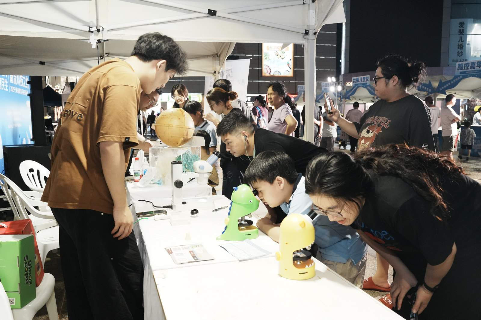 正在科技体验区,来自宁波大市的优良科技企业带来了各自的“镇馆之宝”。永新光学的显微镜前,排起了猎奇的长队。叶子里面像有良多小格子!”一名小男孩兴奋地回头向死后的父母演讲他的“严沉发觉”,正在专业人员的指点下,孩子们第一次亲眼目睹了微不雅世界的奇奥。