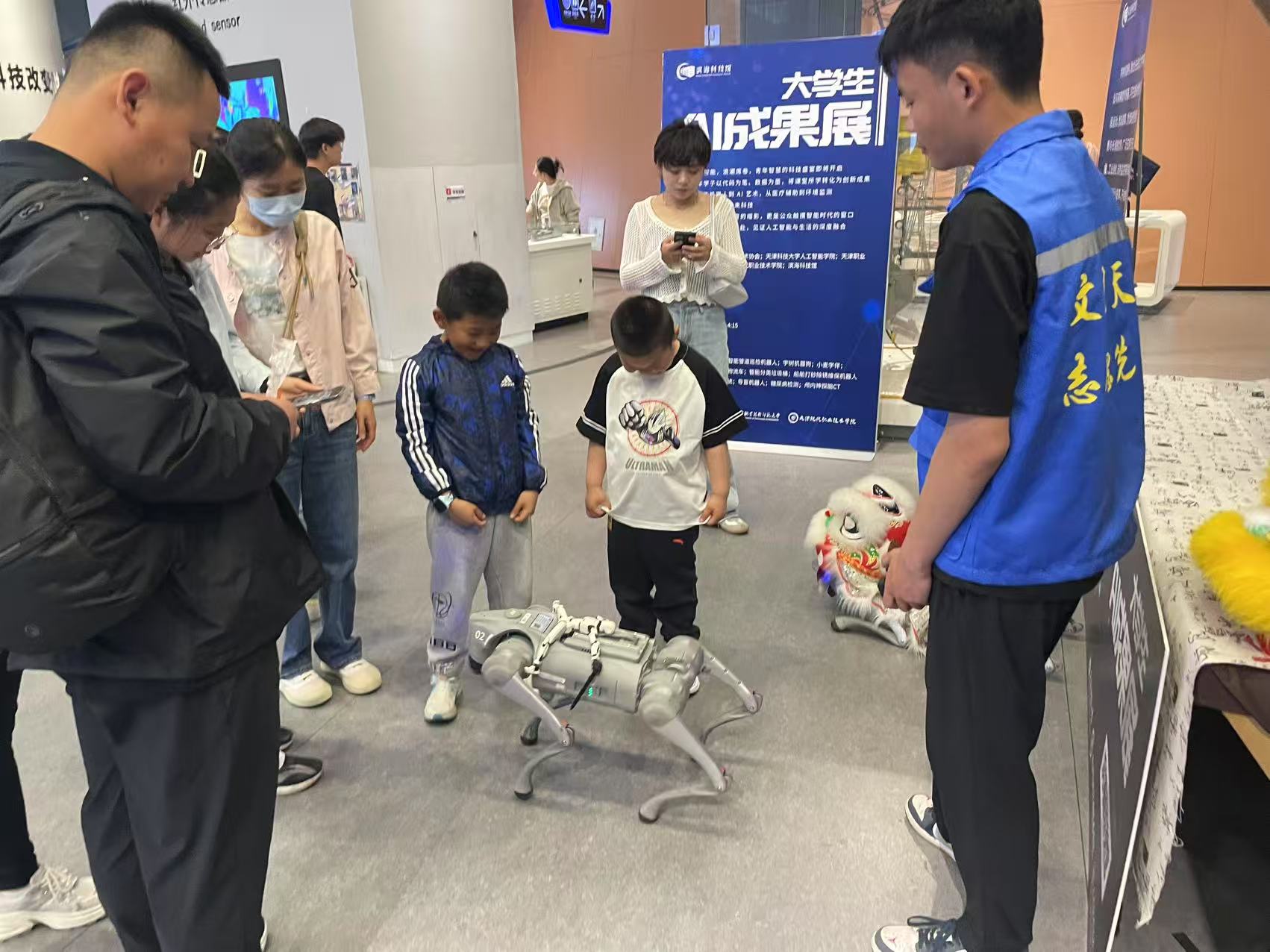 正在四层的智能空间展区内,天津高校学子带来的立异项目激发关心。天津科技大学团队研发的仿生导盲机械人正正在演示避障功能。“它有神经功能,能够按照大数据阐发地图。”项目担任人向不雅众道。另一侧,天津现代职业手艺学院的机械狗正正在矫捷地进行翻转,引来阵阵掌声。“这些发现既有科技高度,又相关怀温度。”带着孙女不雅展的退休教师陈密斯指着语音交互帮老设备说道。天津职业手艺师范大学的学生们也带来了多种自从研发的机械人,展区还设置了各类AI体验项目。