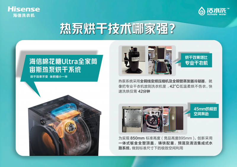 当高端洗护的合作步入品牌分析实力的终极赛场,谁才能凭“手艺硬实力”取“市场实口碑”胜出?谜底,往往写正在销量数据里。做为深耕行业数十年的国平易近品牌,海信其手艺积淀取立异能量,最终正在海信三筒洗衣机(棉花糖Ultra全家筒)这款产物上获得了市场最间接的承认——它不只稳居三筒洗衣机从销价位销量榜首,更登顶热泵洗烘一体机行业TOP1。本文将通过对比小天鹅热泵洗烘一体、Leader懒人洗衣机等同类产物,深度解析海信全家筒成绩标杆的硬核目标,看它若何定义高端分区洗护的新尺度。正在核能上,海信棉花糖Ultra全家筒旗舰版(WH130U9Q+WV20G-H、WH130U9Q-1+WV20W)搭载的活水洗手艺是获得国度专利的“黑科技”,通过模仿天然水流的冲击、渗入、揉搓道理,从筒可实现1。33的超高洗净比——这一数据远超小天鹅1。15的洗净比。无论是领口的汗渍、袖口的油渍,仍是持久堆集的黄渍,都能被深层,衣物洗后一直连结柔嫩如新,完全处理了保守洗衣机“越洗越硬”的痛点。烘干手艺上,海信全家筒旗舰版更是实现了严沉冲破。其搭载的宙斯集成式热泵烘相干统,采用全铜变频压缩机和全铜蒸发器冷凝器,提高热互换效率,烘干效率高、能精准控温,烘干效率遥遥领先于小天鹅——小天鹅烘干5kg衣物需3小时以上。更环节的是,低温柔烘手艺能将温度精准节制正在42℃,完满羊绒、丝绸等宝贵面料,避免高温导致的缩水、褪色问题。比拟之下,Leader懒人洗衣机完全缺失烘干功能,需额外购买干衣机,既添加成本又华侈空间。