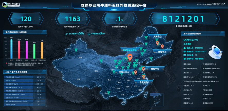 优然牧业凭仗近40年的反刍饲料研发和出产经验,操纵自有超62万头奶牛和办事超200万头奶牛的大数据堆集,操纵奶牛可穿戴的传感器,采集、阐发奶牛及时数据,通过精准养分系统切确计较出奶牛出产取维持所需的养分。同时,使用自从成立的中国奶牛养殖次要原料近红外养分数据库对饲料原料进行养分检测,通过原料性价比评估系统,对原料性价比进行评估,获得养分最佳的原料方案。最初,使用精准配方软件系统,根据牛群消息、原料养分消息,精准制定奶牛养分方案。